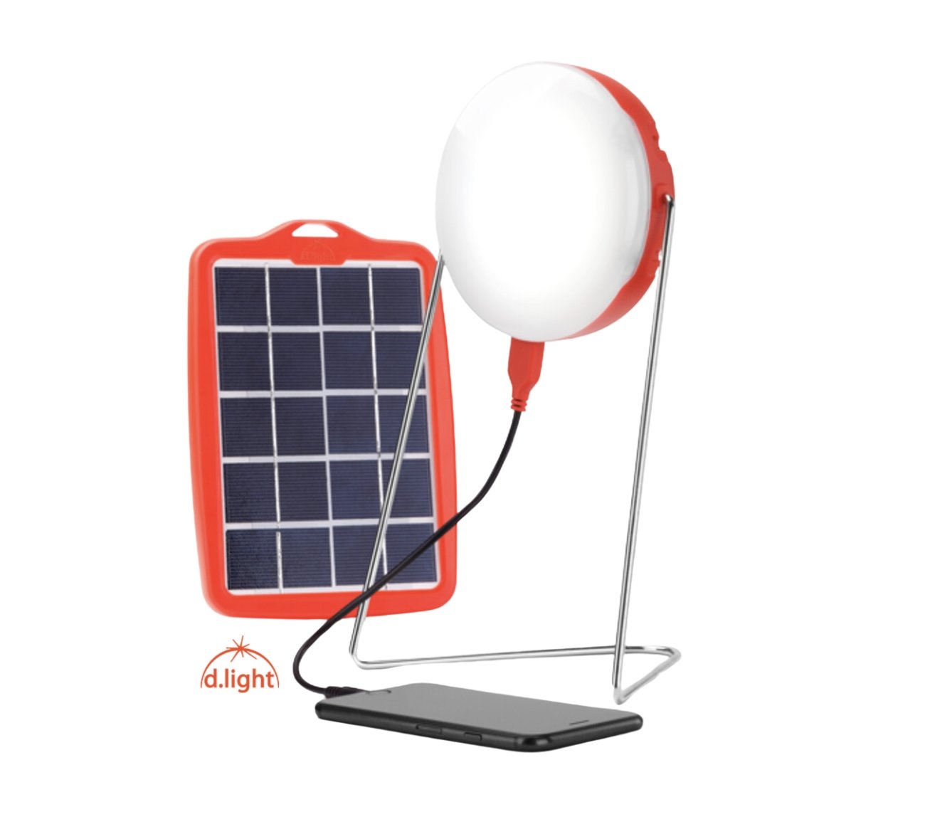 Dlight D100 Solar Light with 3Bulbs, Lithium battery, panel and phone chargers